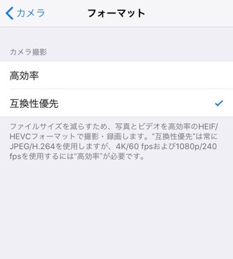 ※設定 → カメラ → フォーマット から「互換性優先」を選択してください。